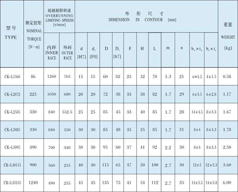 CK-L楔塊式單向離合器